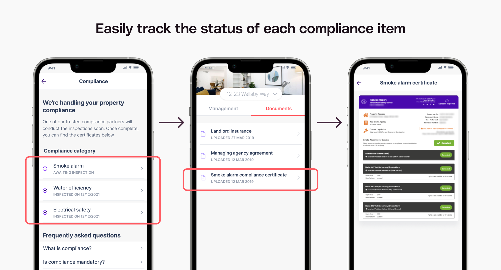 Stay organised and in control with visible status updates of all the compliance items that are relevant to your property.