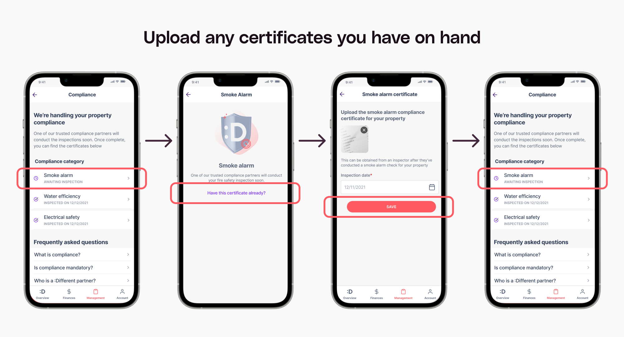 Say we’re managing your compliance, but you already have a valid smoke alarm certificate from your previous property manager - no problem! You can easily upload the certificate you have to your Owner App 📤